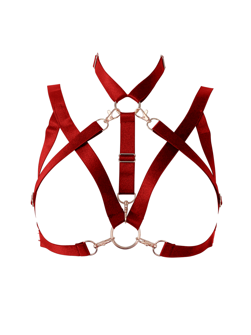 Luxurious satin elastic straps linked with rose gold hardware and lobster claw clips.